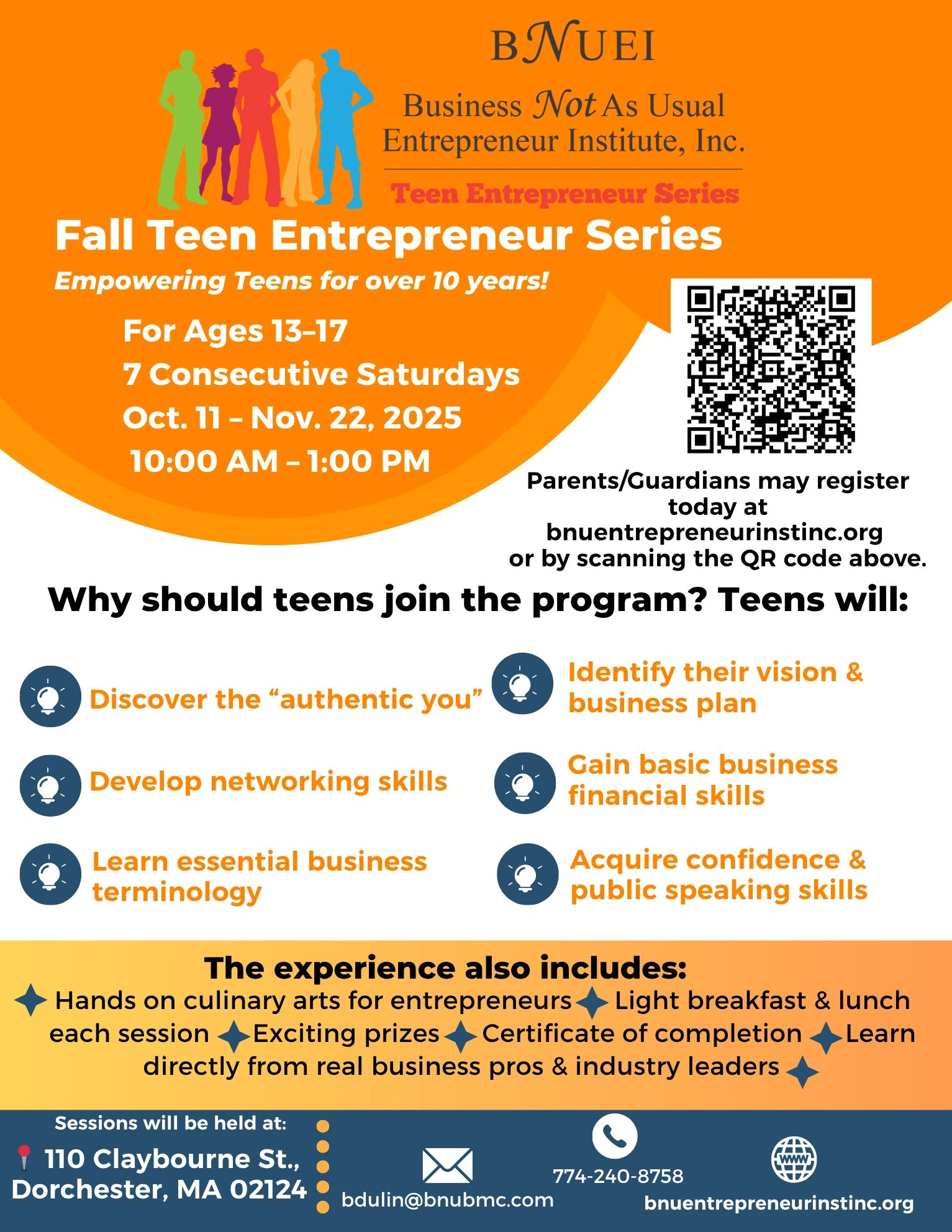 The "Teen Entrepreneur Series" is designed to provide minority teens living in the inner city of Boston, ages 13 to 19 access to leadership and business education in an environment that is conducive for sharing historical legacy, develop self-discipline, creativity, and business etiquette.